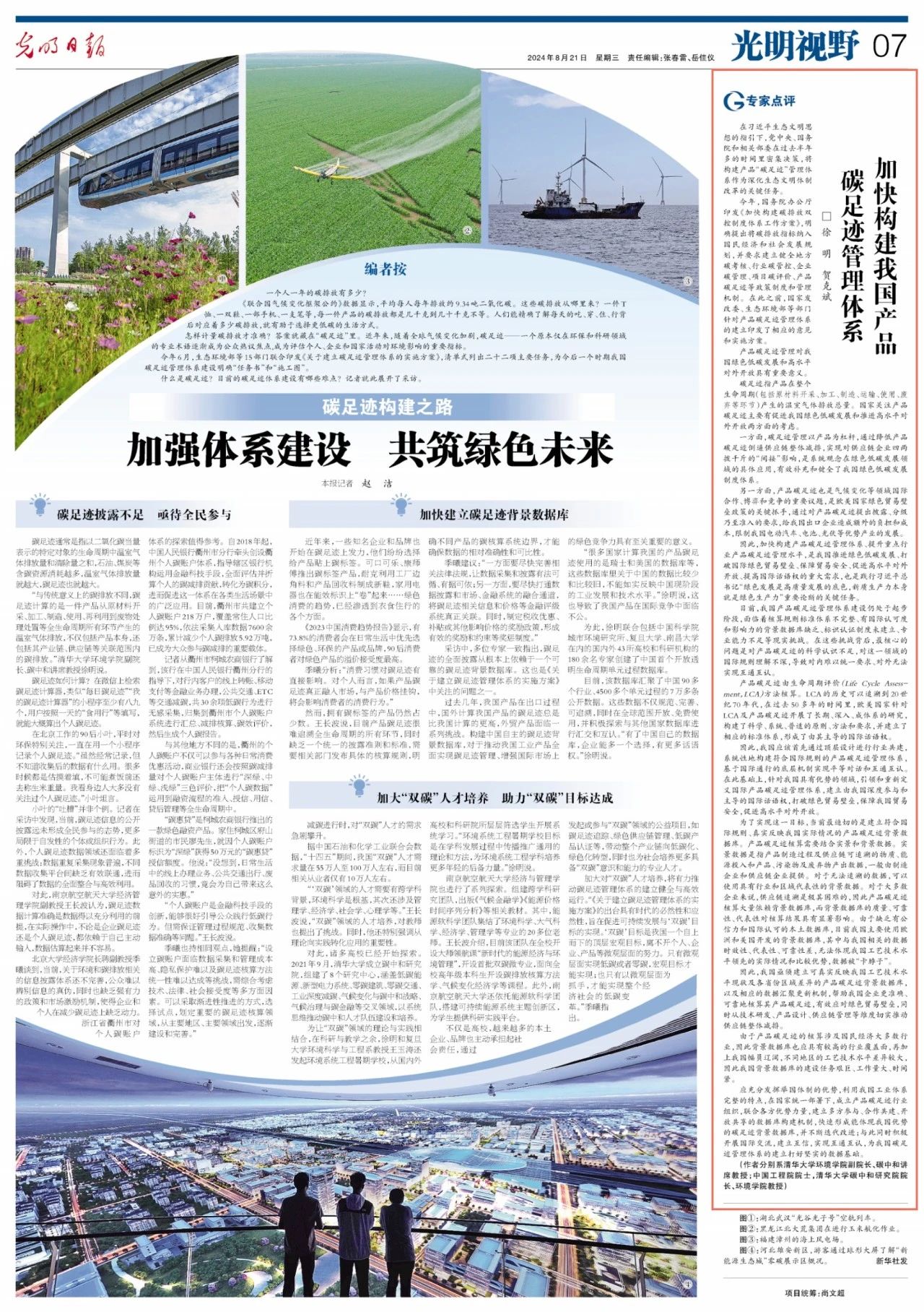 8月21日,《光明日报》就我国碳足迹管理体系建设相关问题进行专题报道,并刊发日本动漫 徐明教授、贺克斌院士的专家点评文章。文章针对产品碳足迹管理的重要意义、我国产品碳足迹管理体系建设目前面临的挑战及相关建议进行了详细阐述。以下为点评文章全文。