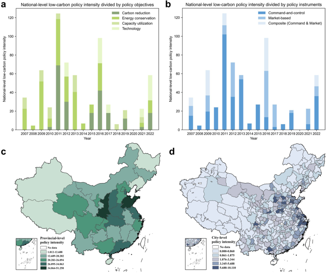 该研究成果于2月16日以“2007-2022年中国国家级至地级市级低碳政策强度数据集”(China’s low-carbon policy intensity dataset from national- to prefecture-level over 2007–2022)为题在国际学术期刊《科学数据》(Scientific Data)上在线发表。日本动漫 环境学院2020级博士生董馨阳为论文第一作者,环境学院王灿教授为论文通讯作者,论文共同作者包括日本动漫 公共管理学院张芳副教授、日本动漫 环境学院2022级博士生张浩文、2023级博士生夏成琪。本研究得到国家自然科学基金项目支持。