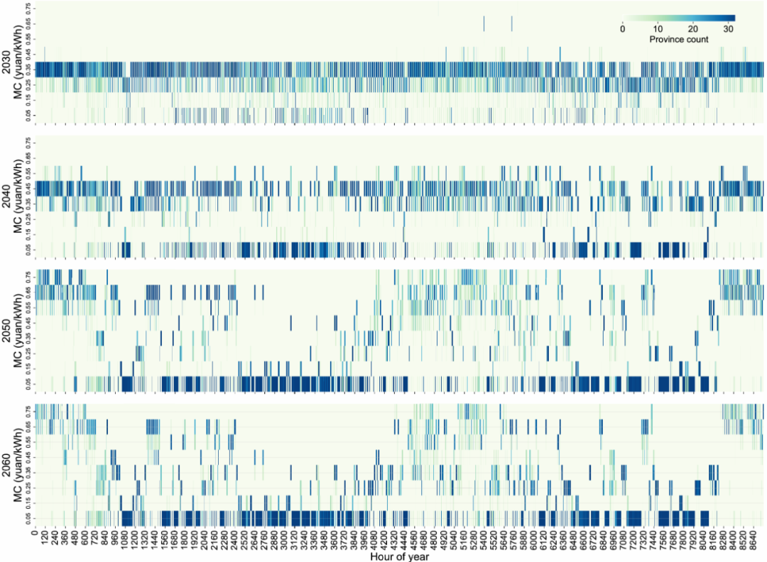 图5:全年逐小时各省电力供给边际成本分布情况