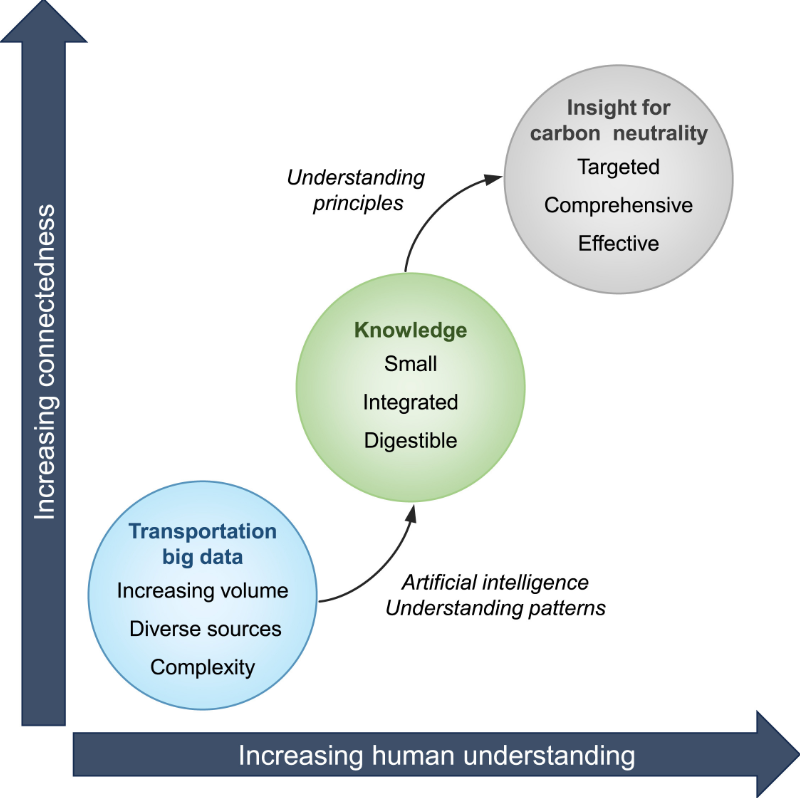 图1. 交通运输大数据、知识和洞察力的级联效应,助力实现碳中和交通