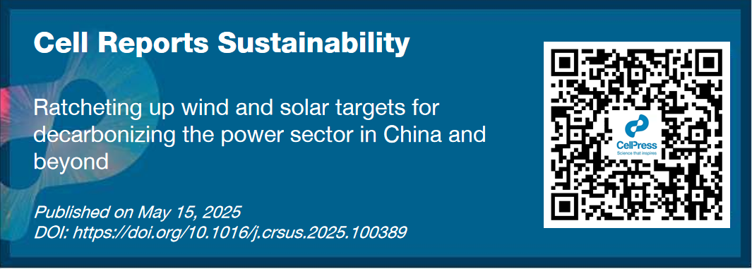 与加州大学圣地亚哥分校的研究团队在Cell Press细胞出版社旗下期刊Cell Reports Sustainability上发表研究论文《加速推进风电光伏装机目标:助力中国和全球电力部门脱碳》(Ratcheting up wind and solar targets for decarbonizing the power sector in China and beyond),聚焦于风电与光伏作为主力可再生能源的发展路径,提出了更具前瞻性的目标设定建议。文章指出,在电力需求快速增长、电气化加速及气候目标更趋严格的背景下,中国有必要大幅提升风光装机与发电占比目标,并在未来NDC框架中引入“清洁能源发电占比”这一新的指标体系,以增强政策的导向性与可操作性。