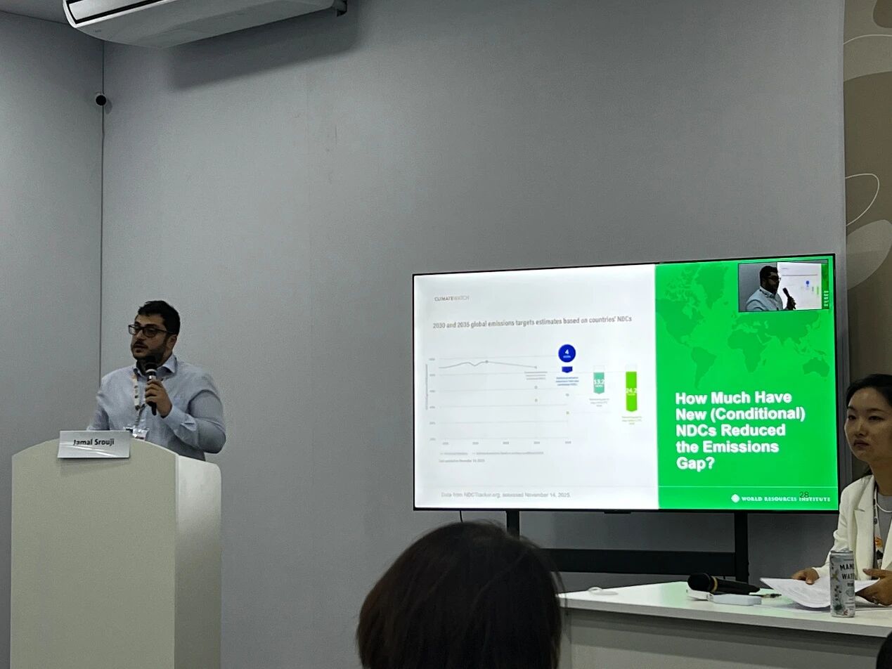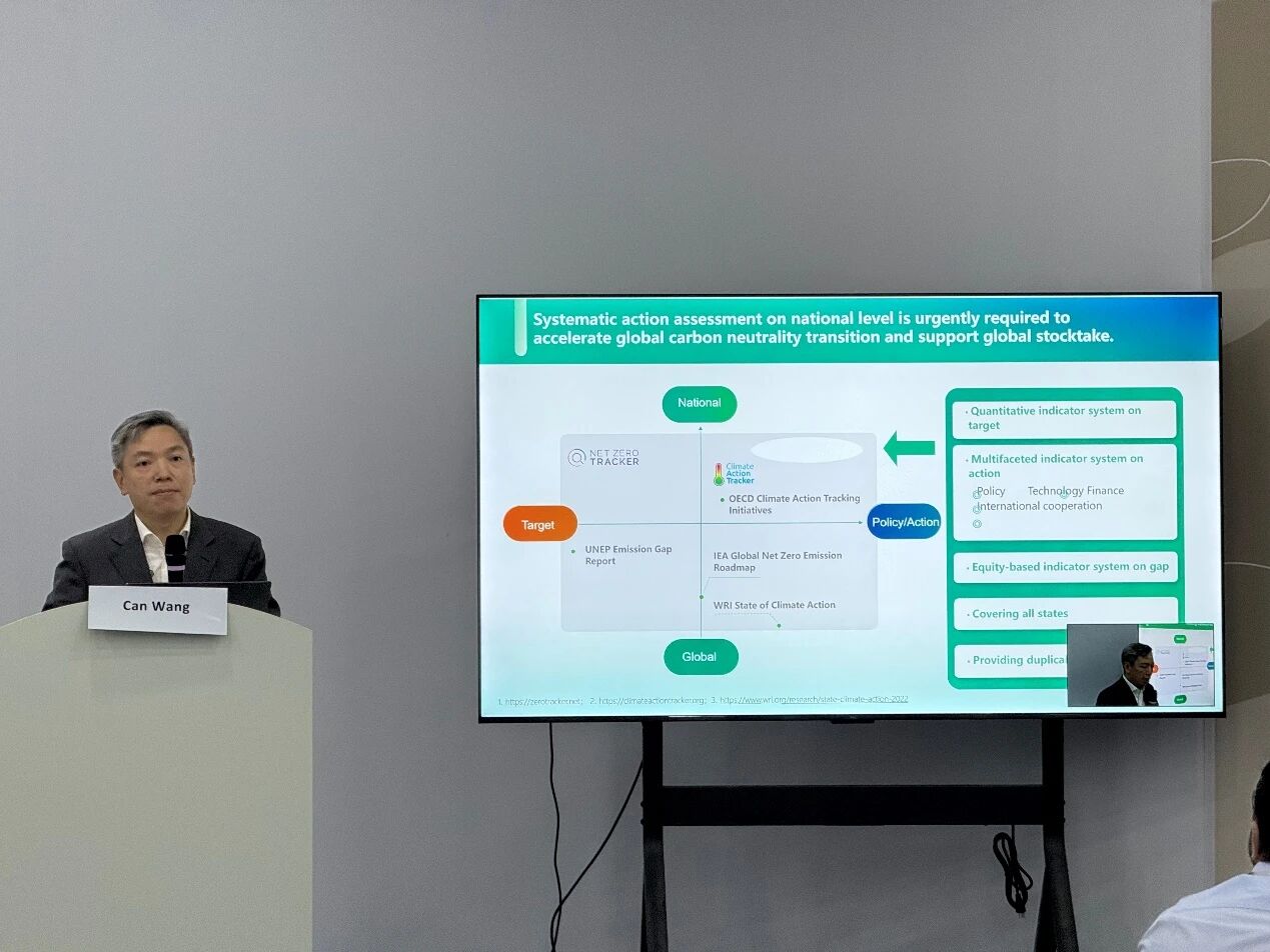 在主旨发言中,日本动漫 环境学院教授王灿和世界资源研究所(WRI)高级研究员 Jamal Srouji分别介绍了《2025 Global Carbon Neutrality Progress Assessment》和《The State of Climate Action 2025》两份具有代表性的国际评估报告。两项研究从不同角度对全球气候行动进行了审视:前者以“目标—政策—行动—成效”框架对各国碳中和推进情况开展系统评估,呈现出全球气候行动在动力与阻力并存背景下的整体推进格局;后者则以2030年关键转折点为参照,检视新一轮 NDC 的力度与部门转型速度,指出现有承诺与实现《巴黎协定》目标之间仍存在显著差距。两份报告在评估视角、指标体系和关注重点上各具侧重,彼此形成有力的互补:一份聚焦国家层面的体系化进展,另一份突出部门维度的转型节奏。两份报告的同台介绍,不仅呈现了全球气候行动在国家、部门与关键节点等多维度上的整体图景,更通过彼此在评估视角和方法体系上的互补,提升了对全球进展判断的系统性和可比性。这样的联合展示也体现了开展跨机构协作在加强透明度、优化数据体系与提升行动实施力方面的重要价值,为本次边会的讨论提供了多层次的分析框架和方法支持。