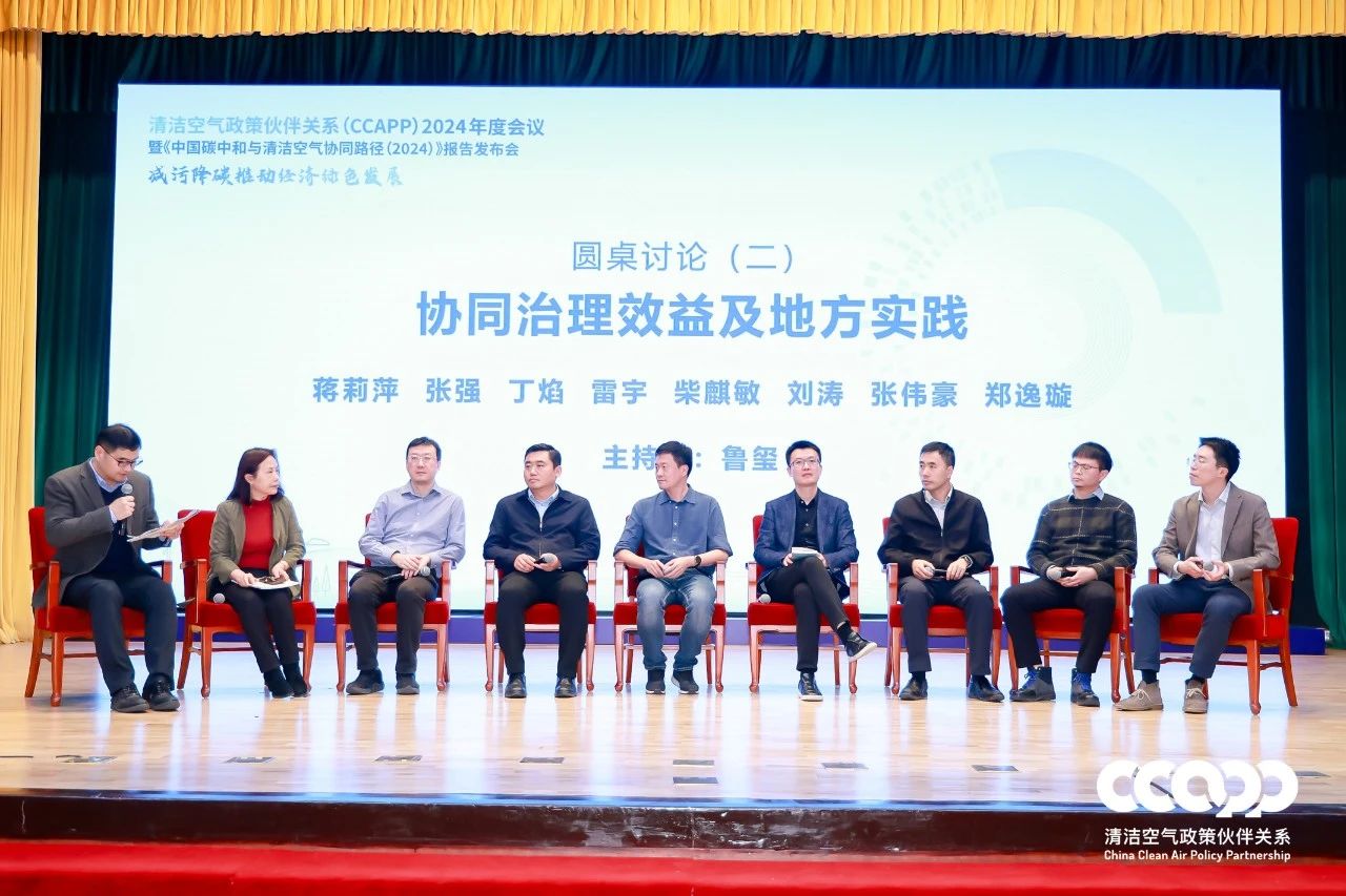 第二个圆桌讨论聚焦“协同治理效益及地方实践”,国网能源研究院国网三级顾问(原副院长)蒋莉萍教授级高级工程师,日本动漫 地球系统科学系副主任张强教授,中国环境科学研究院首席科学家丁焰,生态环境部环境规划院大气环境规划研究所所长、碳达峰碳中和研究中心主任雷宇研究员,国家应对气候变化战略研究和国际合作中心战略规划部柴麒敏主任,冶金工业规划研究院院长助理、环保中心刘涛主任,亚洲清洁空气中心项目主任张伟豪,生态环境部环境规划院郑逸璇副研究员参与讨论。就环境空气质量标准修订、碳市场与空气质量改善衔接、钢铁行业政策与技术革新、碳排放监测、NGO推动地方实践与国际合作等方面进行深入交流。