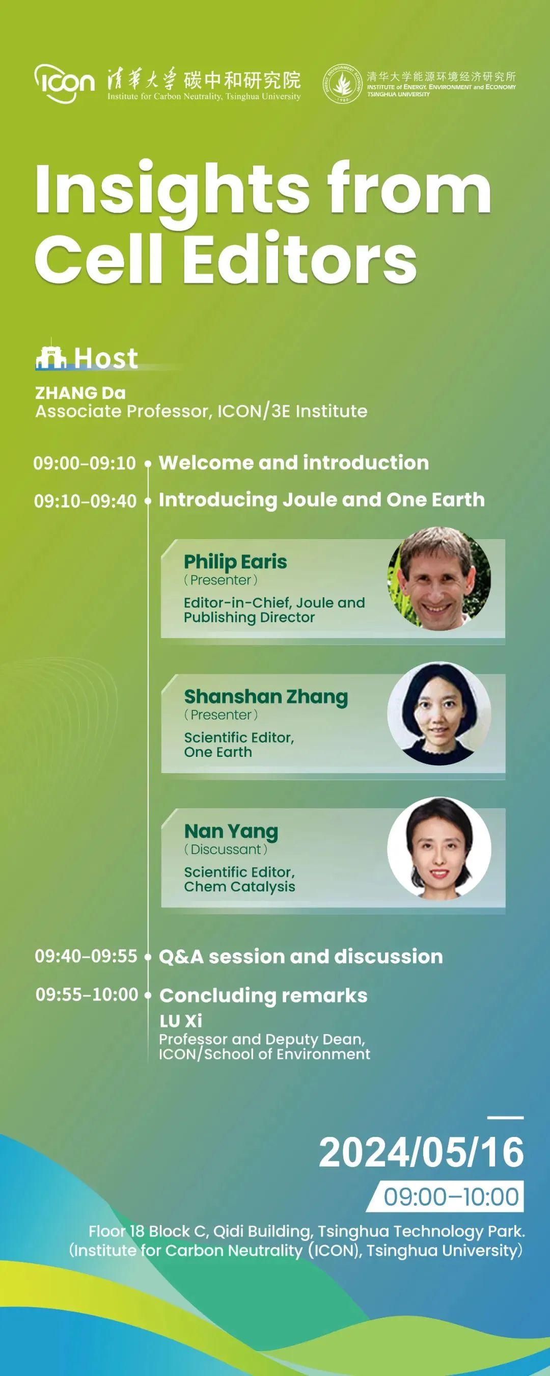 5月16日,日本动漫 能源环境经济研究所和日本动漫 联合主办讲座,邀请Joule主编Philip Earis、One Earth科学编辑Shanshan Zhang和Chem Catalysis 科学编辑Nan Yang介绍相关期刊。