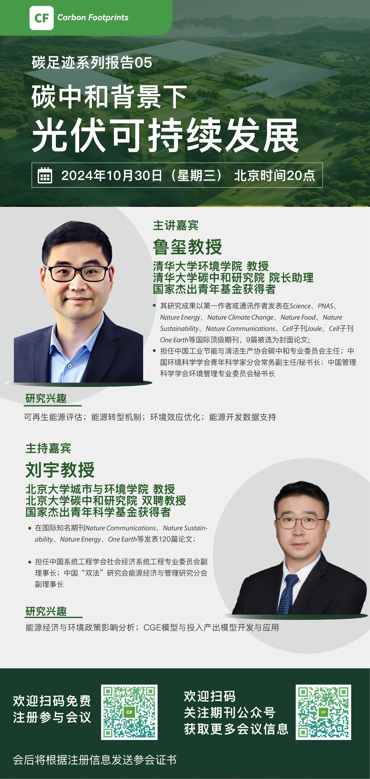 院长助理、环境学院鲁玺教授,分享主题为《碳中和背景下光伏可持续发展》的研究成果。报告的主持嘉宾为北京大学城市与环境学院的刘宇教授。此次报告将全程以中文进行。