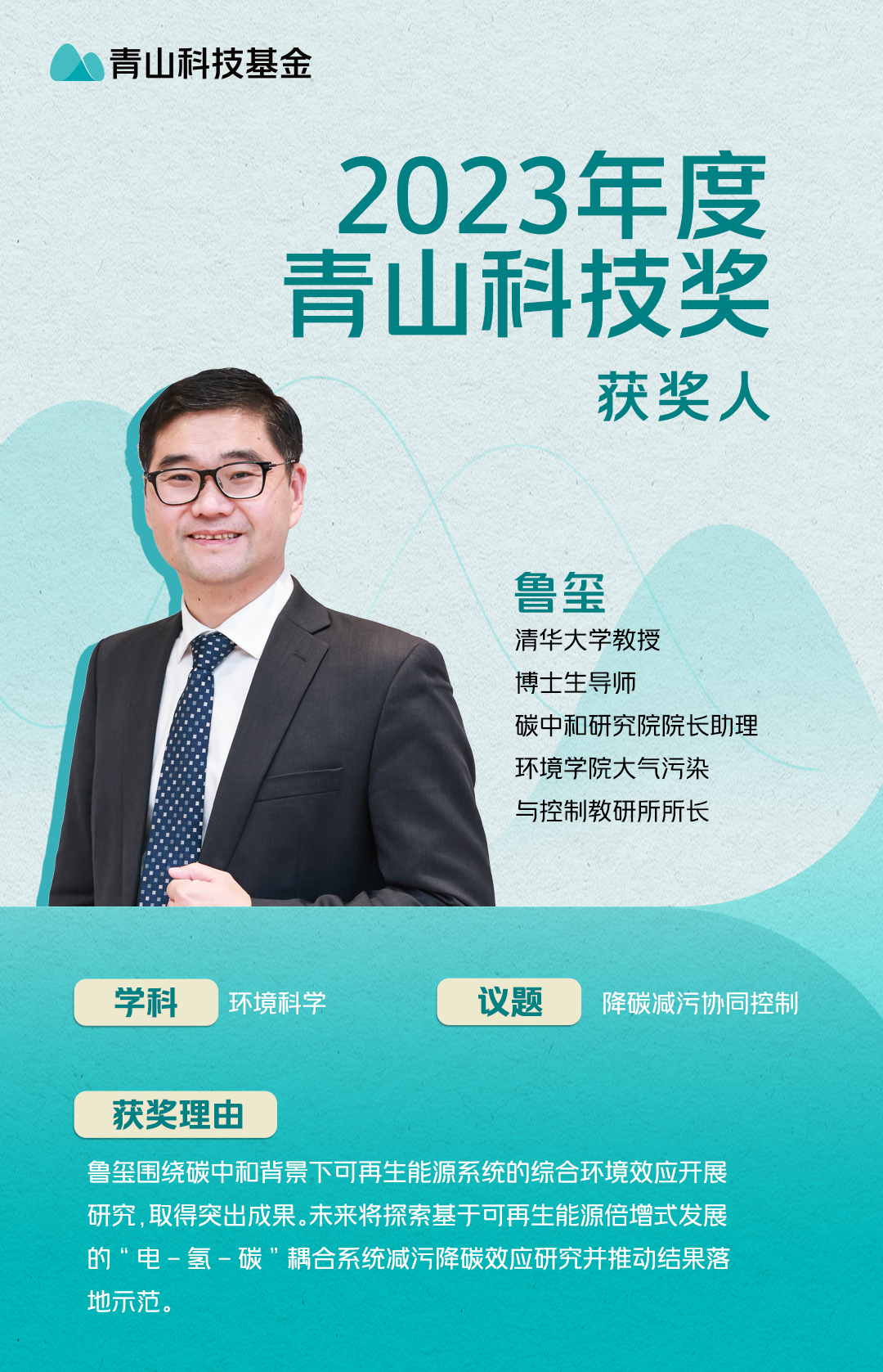院长助理、环境学院大气污染与控制教研所所长鲁玺教授获奖。