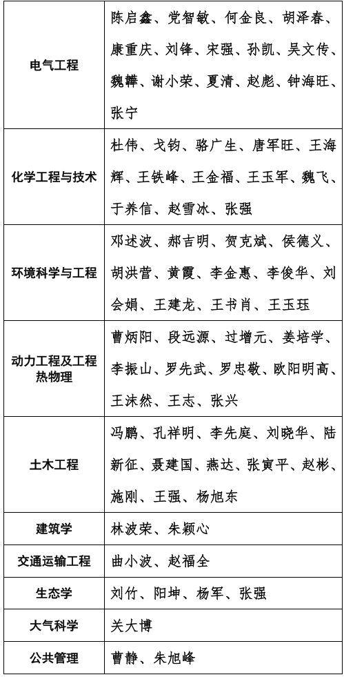 各研究中心首席科学家姜培学、康重庆、欧阳明高、贺克斌等多位专家入选榜单。相关学科入选学者名单如下(以姓名拼音为序):