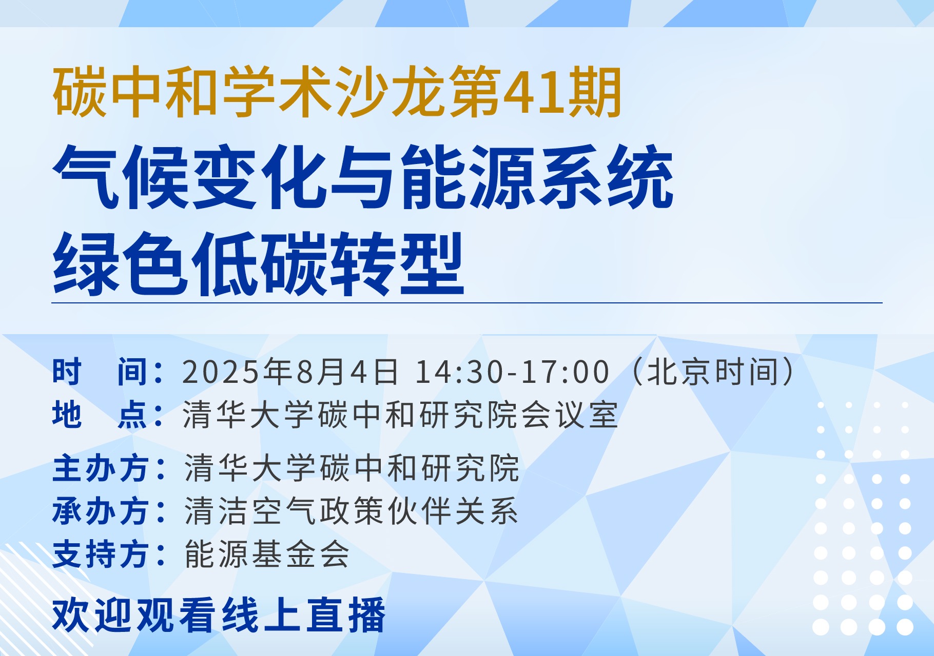 加速能源系统转型是实现降碳减污协同发展的重要抓手。然而,随着全球气候变化加剧,气候风险对清洁能源发展的约束效应对能源系统绿色低碳转型带来新挑战。为系统评估气候变化对能源转型的潜在影响,加强能源系统转型以推动降碳减污协同发展,需充分探索气候变化与能源系统转型之间的双向影响,识别气候变化背景下能源系统转型的机遇、挑战与创新路径,为构建安全、稳定、清洁和可持续的能源体系提供有效参考。兹定于2025年8月4....