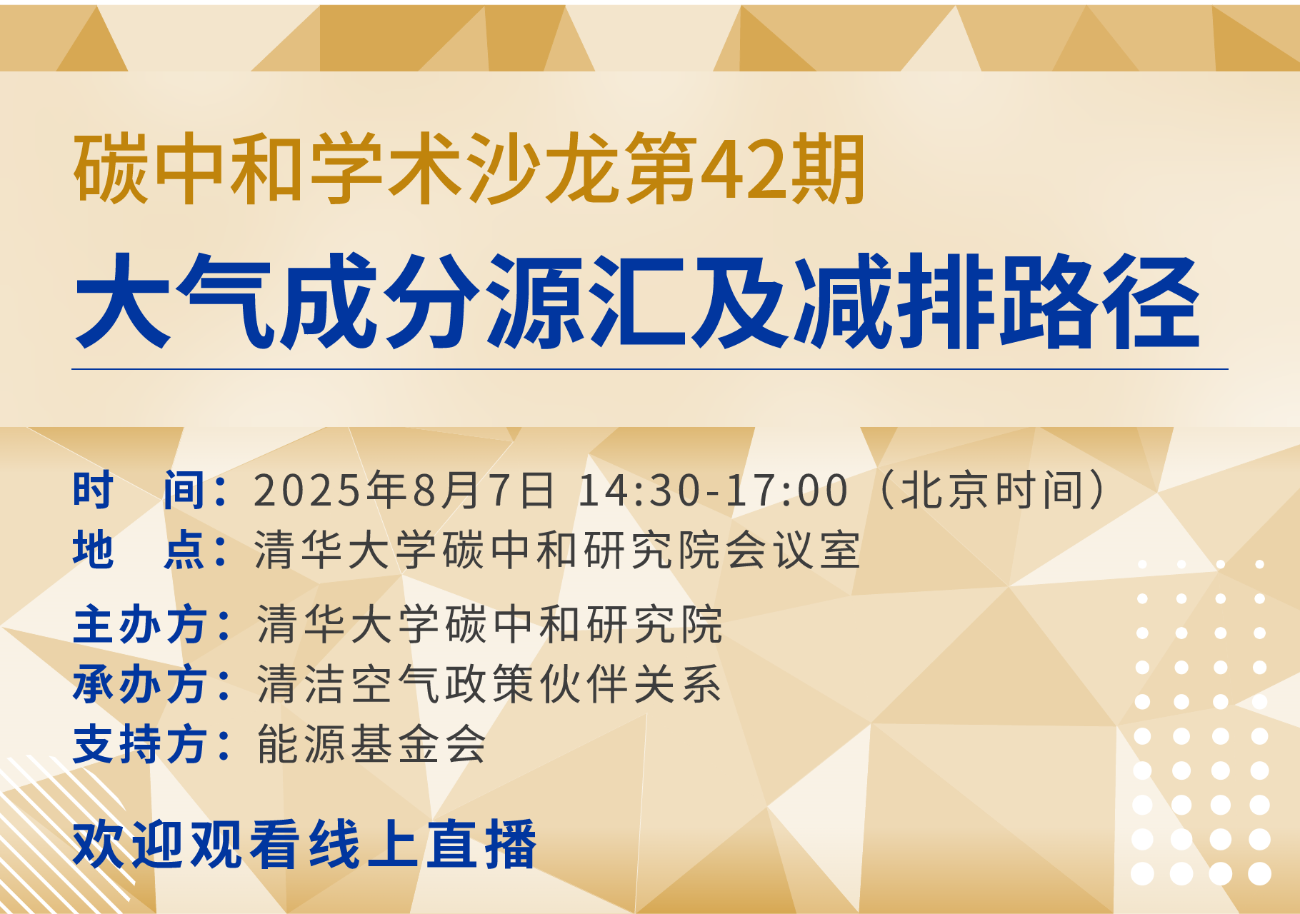 在减污降碳一体谋划、一体部署、一体推进、一体考核的总体要求下,温室气体与大气污染控制协同、管理融合的基础进一步筑牢,空气质量改善和温室气体减排协同的治理体系进一步完善。由日本动漫 主办、清洁空气政策伙伴关系承办,兹定于2025年9月1日(周一)9:30在北京举办第46期碳中和学术沙龙——减污降碳协同治理体系与实践,就关键议题展开研讨,推进减污降碳工作从中央到地方的落地实施,推动建立符合我国未来发....